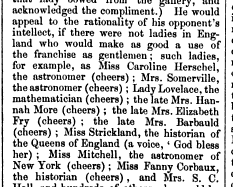 A positive roster of accomplished women from a speaker advocating for women’s suffrage, 1852– early indeed, and accompanied by ambiguous ‘laughter’: