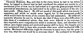 And who else was at this historic meeting? Why Charles Babbage! Speaking at great length in support of Brunel and on all sorts of subjects (hear! hear!); if you have excellent eyesight, some patience, and an obsessive interest in Charles Babbage, you can catch a real sense of his speaking style in the transcript. Here he feelingly remarks on how much easier it is to come up with an invention, that it is to raise the money for it: