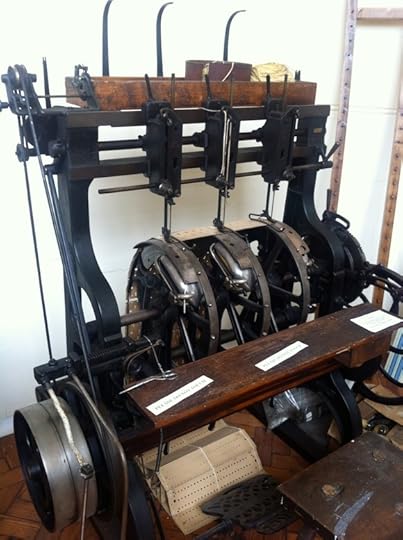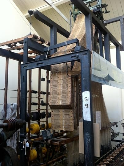 Now that’s an actual punchycard room! It’s the Paradise Silk Mills, which is more than worth a visit, if you’re nearby (call first though, their opening hours are brief). Those are some of the 26 beautiful Jacquard looms, they worked away there for a hundred years up until the 1930s. They all still work, though very slowly- a couple of inches a day! Because it’s hard to get someone to stand and push them back and forth these days.. More punchcards, this is an all-automatic modernish one: