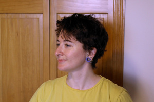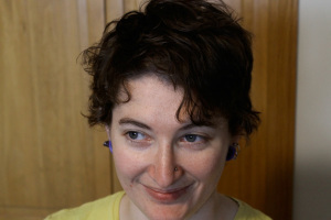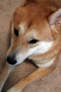 Finally, here are three photographs: two of my new haircut (taken by B) and one of my dog.