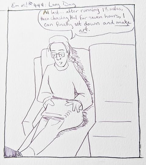 I was training for a 50k when I drew #444. Now I am not, because all the races are cancelled and we are sheltering at home. Somehow I am still tired. Today I got up at 5am, ran 9.8 miles, then after work took Hal on a walk that ended up with me carrying him on my back up two different hills. Well, how is your quarantine going?