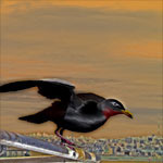 A Mori bird waited for him on the railing, its claws wrapped around the wood. The dying light accentuated the patch of red feathers at the base of its slender neck, the only color on an otherwise black bird. A bloody-throated Mori bird, harbinger of death.