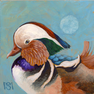 albedo , whitening: purification, burnout of impurity; the moon, female. I represented this with a white egret in moonlight. A little bit of ash remains in the paint.