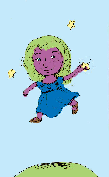 As promised, here is Bango, my three-year-old daughter's imaginary friend. The above drawing was made with her collaboration. I was instructed on the colors and told that she should be jumping in the sky and catching a star.