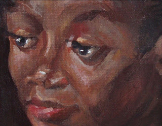 I thought this one went pretty well for 90 minutes. I used a limited palette of only two colors: Yellow Ochre and Cadmium Red (and black and white). So two or four, depending on how you count them. The Anders Zorn palette.