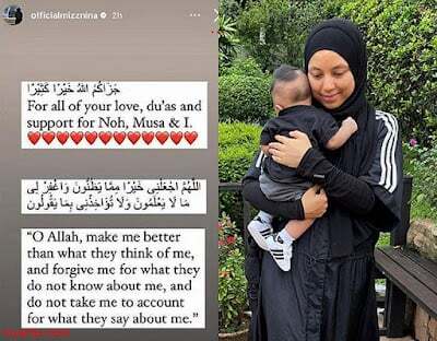“Terima kasih atas cinta, doa dan sokongan terhadap Noh, Baby Musa dan saya. Oh Allah, jadikan saya lebih baik daripada apa yang mereka fikir mengenai saya, ampunkan saya mengenai apa yang mereka tidak tahu mengenai saya, dan jangan menilai saya disebabkan apa mereka cakap mengenai saya,” tulis Nina.