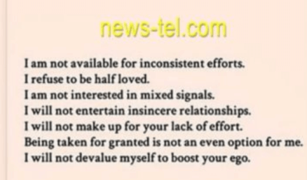 Malah terdapat juga petikan tentang kehadiran yang tidak dihargai selain tentang usaha dalam sesebuah hubungan namun tidak mendapat perhatian daripada pasangan.
