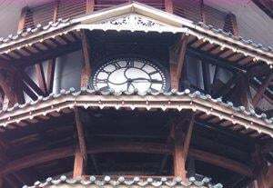 Struktur gaya pagoda telah banyak dipengaruhi oleh seni bina Cina kerana majoriti penduduk bandar itu pada masa itu adalah orang Cina. Setiap tingkat mempunyai ketinggian 5 meter dan anda perlu menaiki 110 anak tangga untuk sampai ke puncak menara. Ia menjadi condong disebabkan oleh tanah yang lembut di dasar menara dan juga disebabkan berat tangki air.
