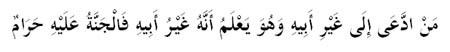 “Sesiapa yang mengaku anak kepada bukan bapanya, sedangkan dia tahu itu bukan bapanya, maka syurga haram ke atasnya” (Riwayat al-Bukhari).