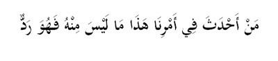 “Sesiapa yang membuat perkara baru dalam urusan kami ini (Islam) apa yang bukan daripadanya maka ia tertolak”. (Riwayat Muslim).
