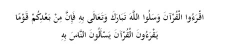 “Bacalah al-Quran dan mintalah daripada Allah (pahala), kerana selepas kamu akan ada kaum yang membaca al-Quran dan meminta (upah) daripada manusia” (Riwayat Ahmad dan al-Tirmizi, dinilai hasan oleh al-Albani).