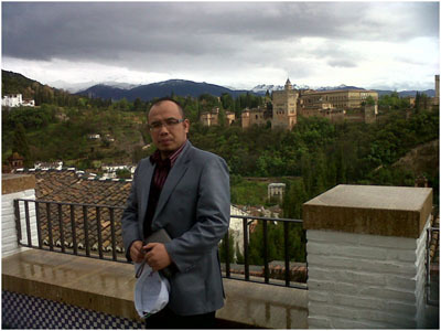 Gambar: Penulis di tepi kolam Alhamra