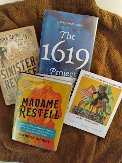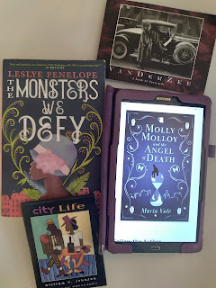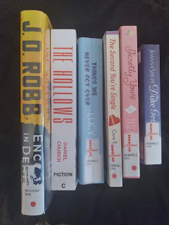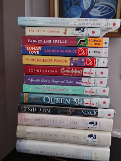 Still joyously chugging through my library jackpot pile of books shared last week (+ one more because my self-control is non-existent when it comes to books).;-)