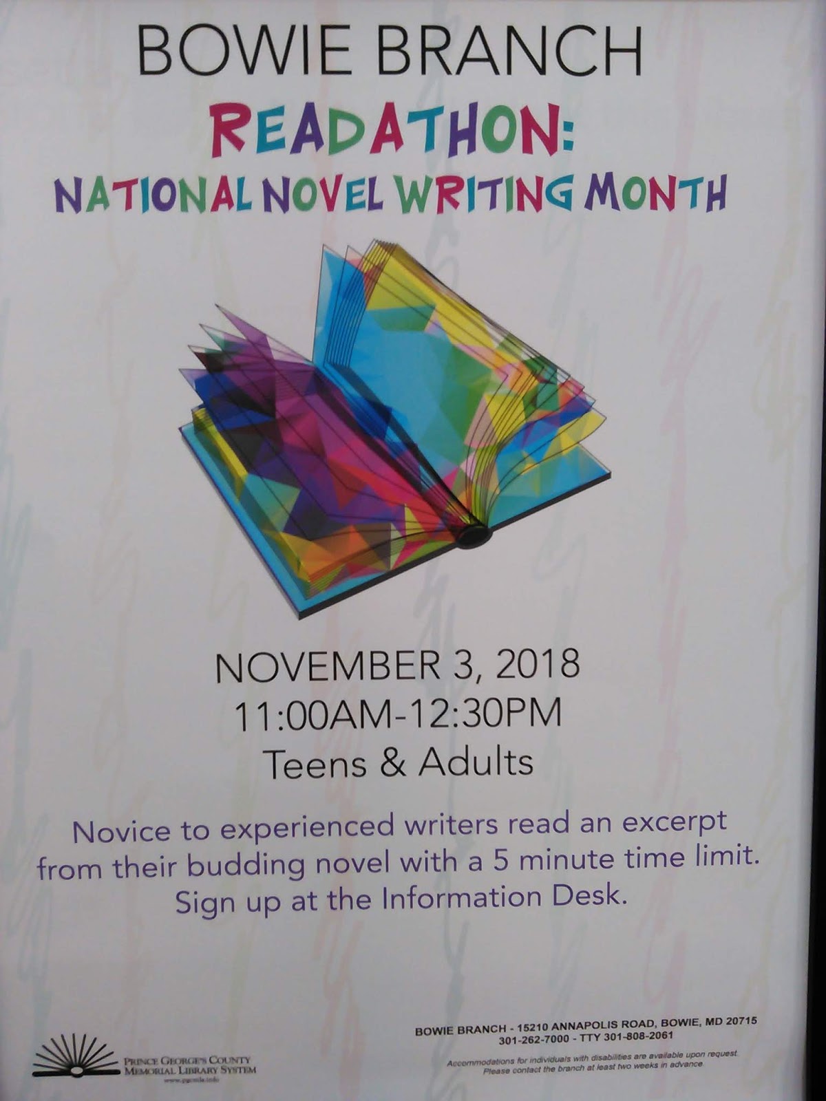This is what you missed at the #NaNoWriMo Readathon at the Bowie Branch Library Saturday, November 3rd: