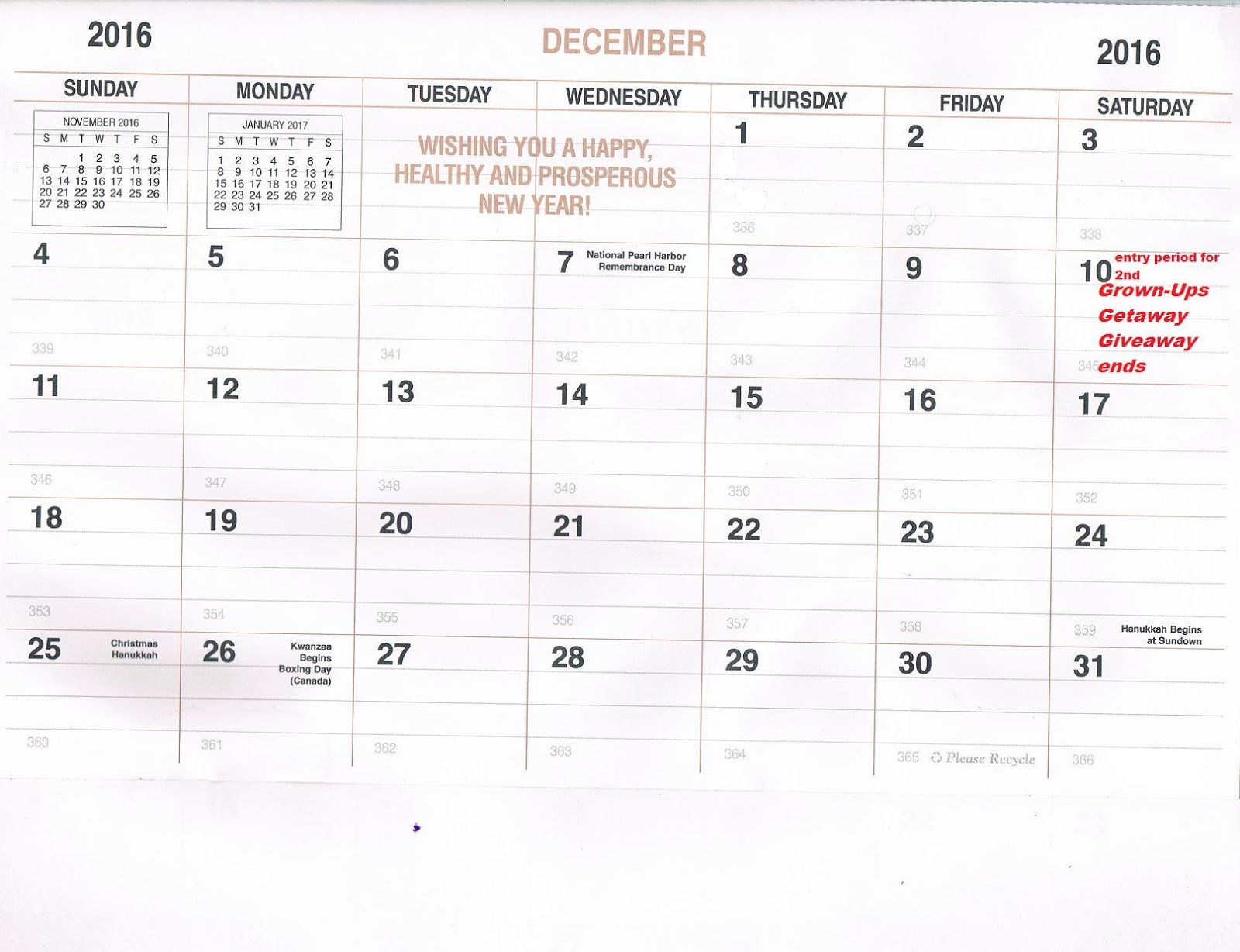 2nd Grown-Ups Getaway Giveaway Extended until 12/10/2016
