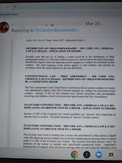 [3/25/25: a somewhat zoomed in screen shot of Maryland State Constitutional law concerning the distribution of child pornography as a reply from 1 account to my "We Are a Book Sanctuary" post from October 2024]