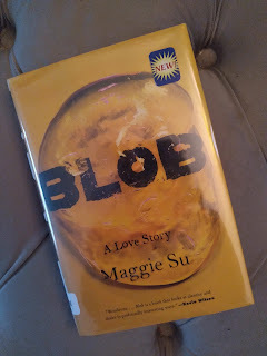 [a hardcover book arranged face up: "BLOB, A Love Story by Maggie Su" with a "NEW" sticker in the upper right corner]