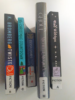 What had happened was... I went to the library to borrow the two books that were on hold for me and the other three books made me borrow them too (by tempting me from their perch on the new arrivals shelf placed right in front of the entryway).