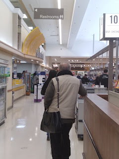 On my way out of my local grocery store, the man shown above accepted the handbag hanging over his shoulder from a woman who then walked into the ladies restroom; no words were exchanged although their direct eye contact and smiles spoke volumes.