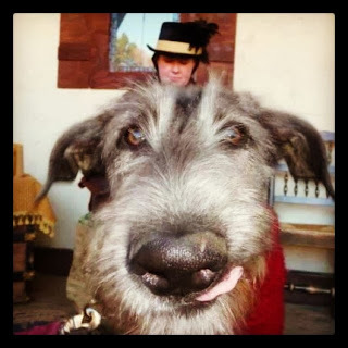 This is me and my girl - well, okay mostly my girl Bryn, with what appears to be a Mommy growing out of her head. This photo was taken by a patron (at one of the renaissance faires where I work as director of the Hounds of East Fairhaven) in November of 2013, when she was just 5 months old and had been mine for about 24-36 hours.We bring period appropriate hounds (mostly Western European, 1500-mid 1600s, but we also include some Asiatic and Eastern European breeds as well) out to meet patrons and we talk about their place in history. We also wear period-appropriate garb (or as appropriate as possible when the threat of a Clobberpaw on one's skirt is a real possibility) and tell the patrons about how these hounds (sight mostly but a few scent hounds as well) lived and worked with people in this time period.