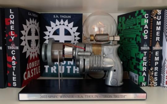 The grand winner of the contest, one of the 7 finalists, will be announced on July 15th. And the winner gets the coolest trophy I’ve ever seen. It’s a model ray gun straight out of the pulp era of SF, with gorgeous detail.