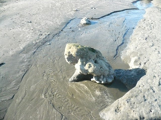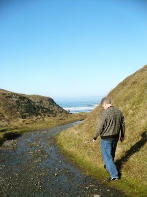 So we have had a lot of grey, windy, stormy days, and been so cold that even with the wood stove going full tilt, the house is chilly. Then we had last weekend, windless, blue skied and lovely. The old Road to the beach was still saturated as we walked down it.