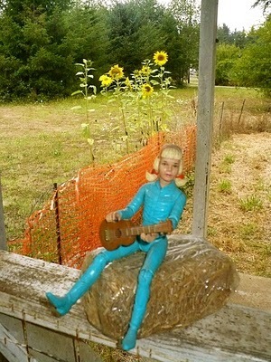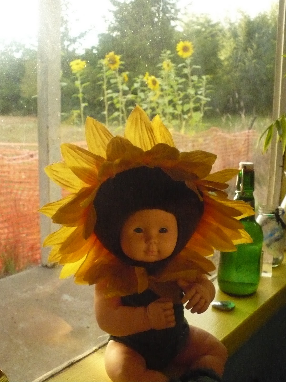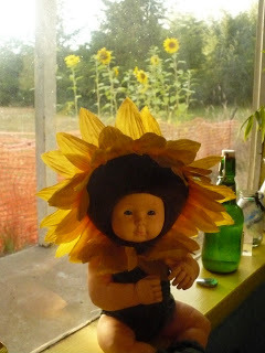 Posing my Anne Geddes Sunflower baby in my Yard