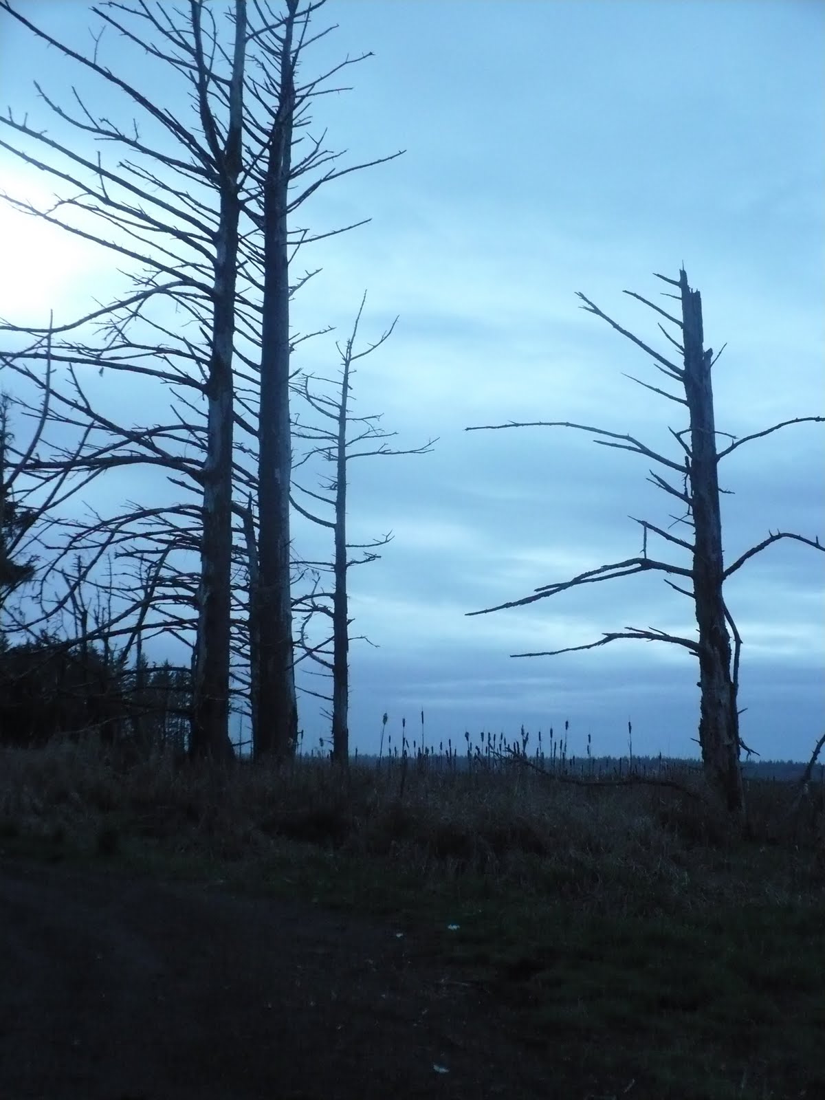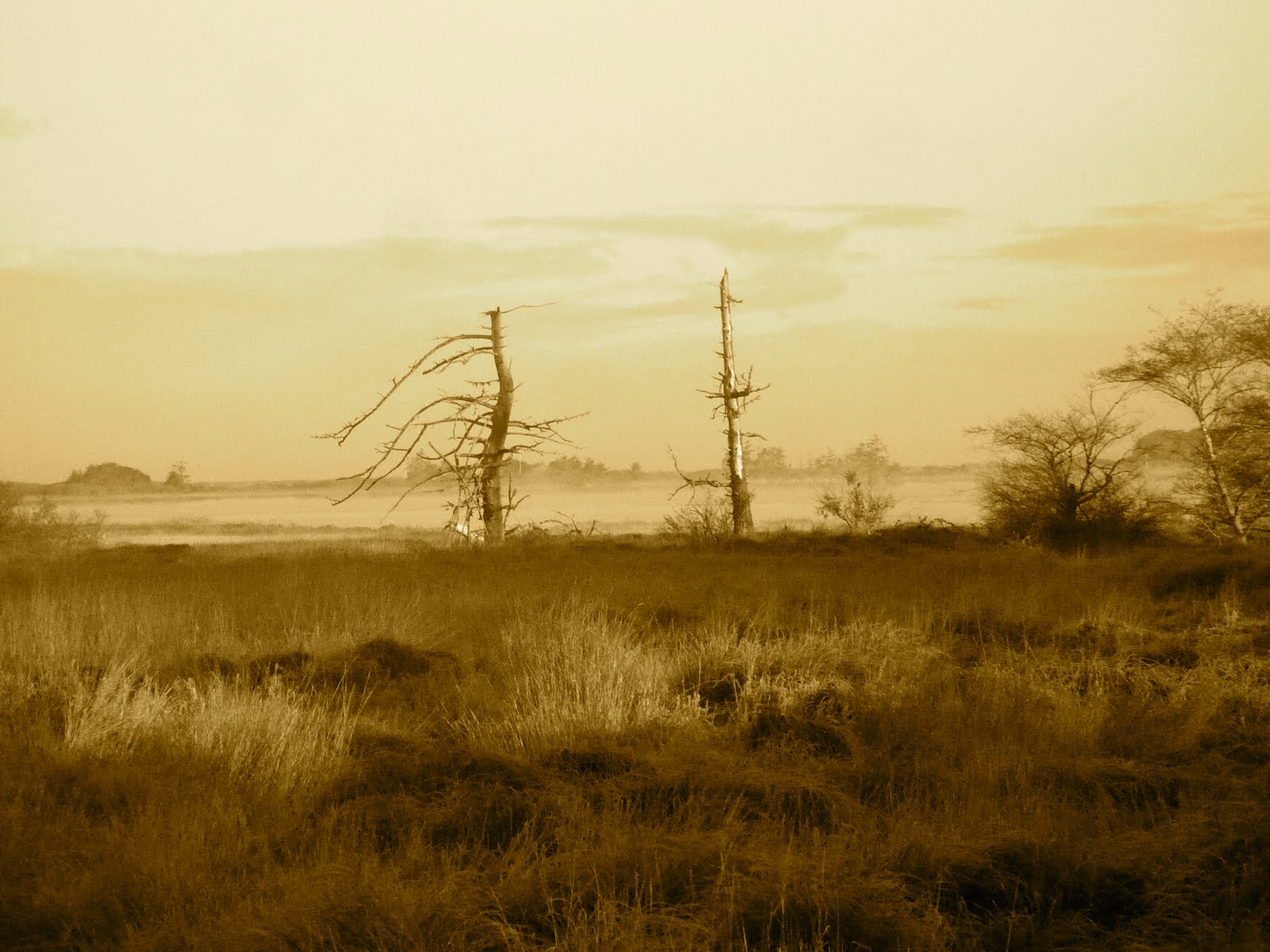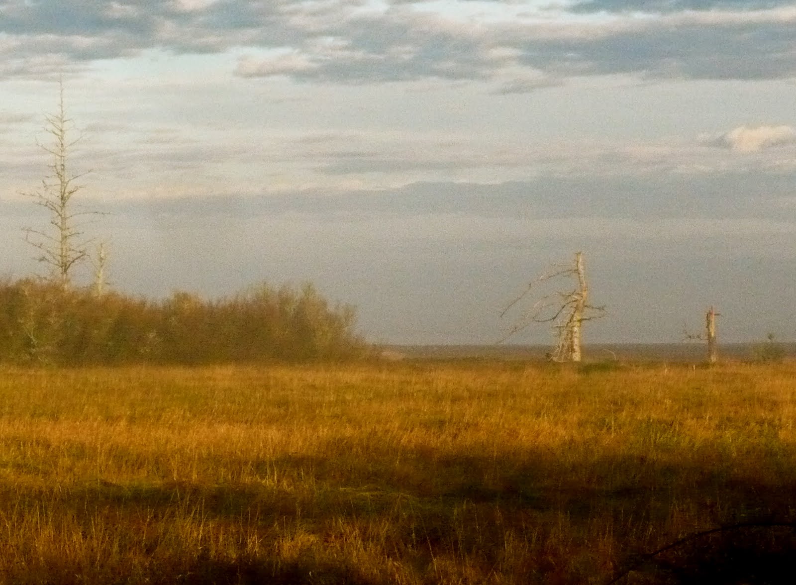 in a changing world to me. When the sky was blue or foggy, and when the marsh was dry or flooded, in spring and summer and brutal winter those two trees looked unchanged and I often stopped to stare at them and remember to breathe, in my own hectic life where Fathers grew sick with cancer, and babies grew into silent teenagers or snuck out and vanished overnight.