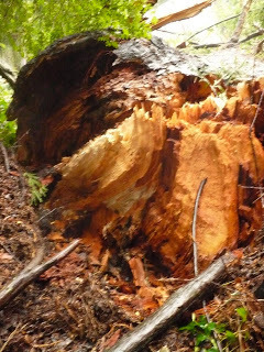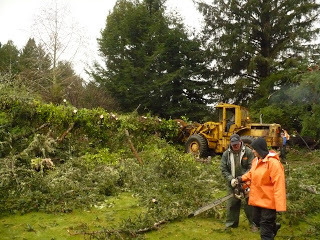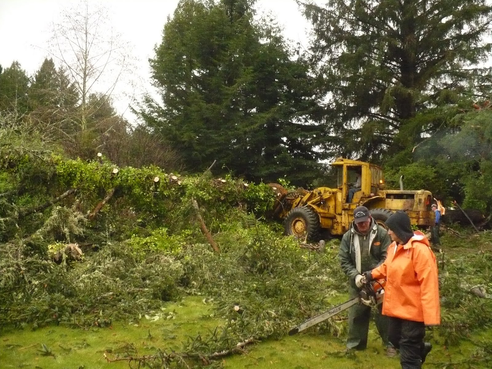 The 90 foot spruce tore out of the ground and brought down the top third of the redwood growing close by.