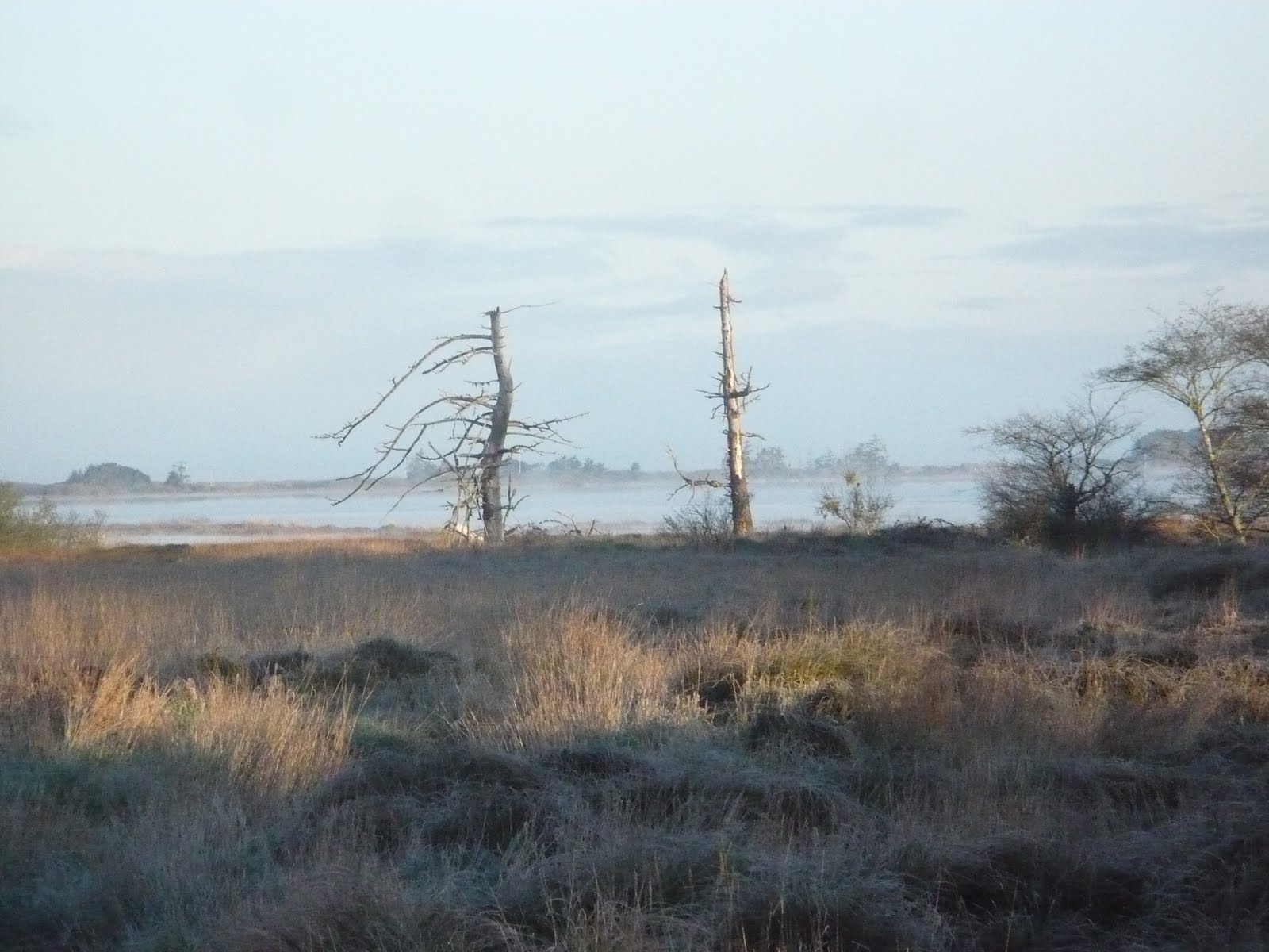 The salty brine of the marsh was where two ecosystems collided to form a third, the fresh water creek, hitting a slough that formed a lake that breached into the Pacific