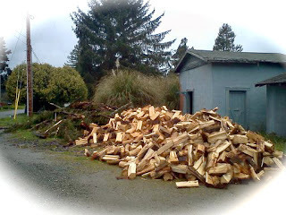 When trees fall in the yard, we mourn them, but then get to work instead of buying more wood for our only source of heat.