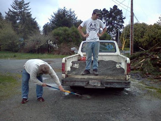 Storms and non-stop rain left the drive a swamp until my son brought some gravel.