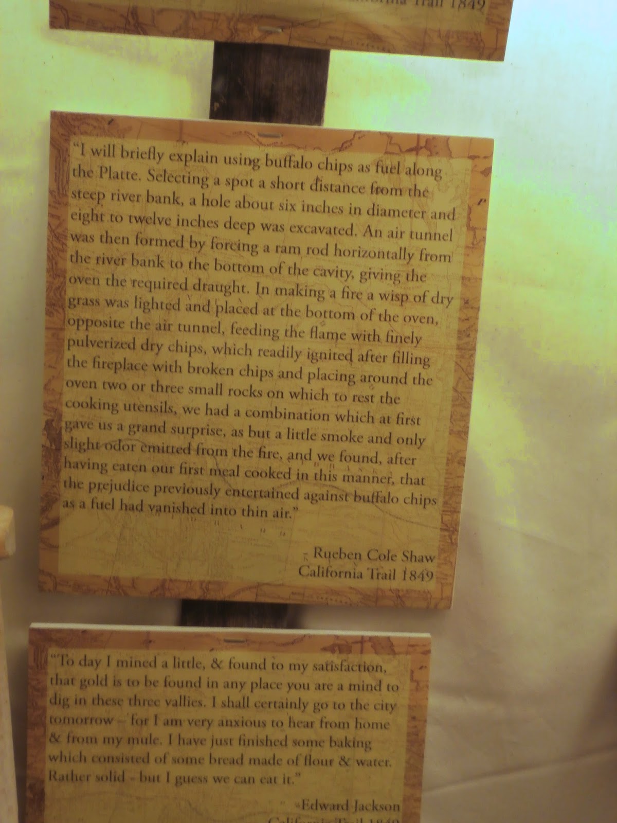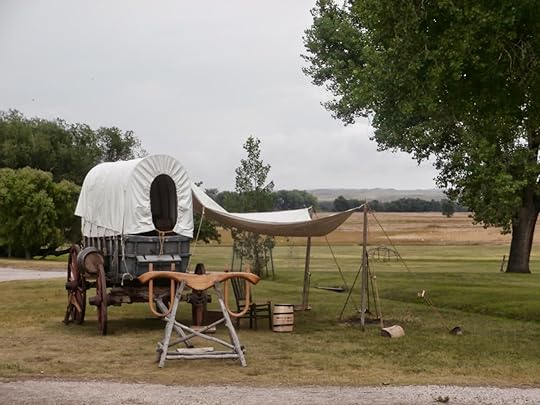 “People tell me that the cholera seems to leave people alone once they make it to Fort Laramie. No one knows what causes it but they think the water is faster here and the land is higher and someway that adds protection. Our group is much smaller now than when we left St. Louis and the Cholera and accidents and weather and people shooting themselves have caused us to leave too many graves scattered behind us. The saddest part is that we will never be able to find the graves again, even if we ever come back this way. To hide the bodies from the wolves, or to keep them from being dug up for their clothing, we hid the grave by packing down the dirt and after that driving wagons across it, and if we had time, even building a campfire on top. “I doubted that she would agree, because Mother thinks that Doctors are all quacks. The fact that she didn't argue tells me she was feeling more poorly than she allowed to us. We did get Mother to see the fort Dr. today, and the man gave her a bottle of tonic which he says will stimulate her liver and clean her blood and leave her strong and healthy. He also gave her some Calomel, and told her that she should stop taking it once she feels her face go numb and she begins to drool a bit. Then she will know it is working. He said that after that, if she is still feeling poorly it is safer to switch to using arsenic to improve her health. He charged Father two dollars. Then he treated many other members of our group with such complaints as burns and gunshots and the bloody flux.“Orville said he must make a lot of money and the Dr. said he sometimes made as much as five dollars when he needed to perform an amputation. Orville said being a Fort Dr. must be a grand way to become rich and the Dr. did not argue. Later, one of the girls who lives here told me that the Dr. often treats people for free or for a bit of trade if he knows they could not pay for him.“Back East we did not go to Doctors, The home remedies are better and safer, and for certain no-one goes to a hospital if they want to live. Many people decide to hang a shingle and be a Dr. if they can't make money from another trade. Here on the trail they seem to be better, I think they see so many people that they get more practice doing the kind of healing that needs done here. Or maybe the kind of person who cheats people is too lazy to brave the trail.“We did get me a new pen in a leather case, with a few nibs, but I feel guilty for asking when the prices here are so much higher than in St. Louis. “Mother says she is grateful that we have enough bacon, and that our chickens provide eggs, but we purchase more cornmeal to refill the barrels. Maybe there was enough to make it to Oregon but it also protects our eggs and Mother's china, which is packed into the barrels with it.“Orville begged until he convinced one of the soldiers to allow him and three of his friends to climb up on the top of the rooms which are built around the inside walls. The roofs of these rooms become a walkway by which means the soldiers can patrol the high outer wall without making targets of themselves. I was expected to be more interested in shopping, but I envied the boys ability to explore that view. It wouldn't have been right for a young lady to talk so freely with the soldiers and for a moment I wished I were 10 instead of 15, so I could worry less about 'proper.'”