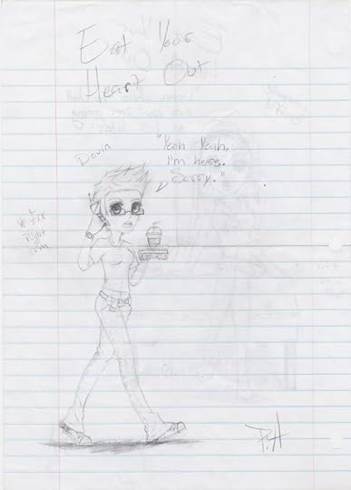 Recently, I came across a folder full of shitty poems I wrote for my mandatory undergrad class. They are hilarious, as I am seemingly incapable of writing poetry unless it is super emo (hilarious by nature) or intentionally a joke (jokes are funny even - or especially - when they fail!). It's not that I don't enjoy reading the occasional poetry book, or admire those who take writing poetry seriously. It's just that I really, really suck at it. Therefore, I thought you make like to laugh with/at me. Here are some poems plus doodles I did in my workbook during class: