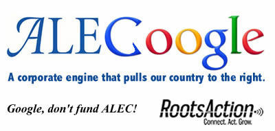 And there's more really bad news: Google is funding ALEC, the powerful, secretive, and destructive lobbying force from which many companies concerned with their public images are fleeing. ALEC is in the news this week, holding its 40th annual meeting. Together with allies, RootsAction.org is applying as much pressure as we can. And it might just be that the tide is turning. Google just might have to start worrying about whether its users favor plutocratic plundering or not.