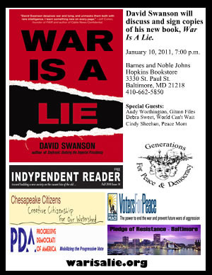 David Swanson to Discuss, Sign Copies of "War Is A Lie" in Baltimore, Md.