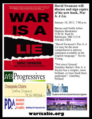 David Swanson to Discuss, Sign Copies of "War Is A Lie" in Baltimore, Md.