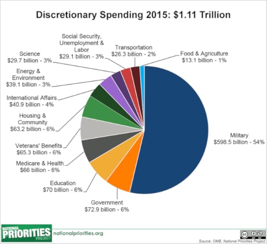 The vast difference between the modest expenditures on public goods and the tiny military cuts is made up by taxing financial transactions, carbon, capital gains, etc. All such taxes are goods in and of themselves. But the sort of investment in transition to sustainable energy that we actually need, plus the restraint in murdering large numbers of people that those large numbers of people need, can only come from serious cuts to the military. The $76.1 billion cut to the slush fund is a good start. But much more serious cuts are needed to so-called Defense, to Energy, to so-called Homeland Security, to the CIA and NSA and so on. The habit of refusing to imagine serious change didn't begin with Hillary Clinton for President. It's deeply ingrained in Washington.