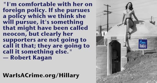 Pushing policies with your husband to create mass incarceration and then pretending it just happened like the weather, ramming through NAFTA and pushing more corporate trade agreements at every opportunity (but pretending momentarily to oppose the TPP), defending the Wall Street crooks who trashed the economy and taking hundreds of thousands of dollars to give them speeches promising to protect them and refusing to make public the transcripts, pressuring the White House for a war on Libya for reasons of oil and looting, facilitating coups in Honduras and Ukraine, stirring up hostilities with Russia, talking of obliterating Iran, insisting on yet more, counterproductive war in Syria and Iraq, pushing for massive bombing in Syria, giggling about murdering Gadaffi and the people (including female people) of the entire region be damned, turning the State Department into a marketing firm for U.S. weapons companies and U.S. fracking companies, taking many millions from corrupting interested parties while claiming to be dead broke, supporting unconstitutional spying and retribution against whistleblowers, corporatizing the Democratic Party and proposing that it should "represent banks," defending any and all of this by yelling "9/11," and suggesting that opposition to any of this makes someone sexist -- that all seems outrageously reprehensible to me.