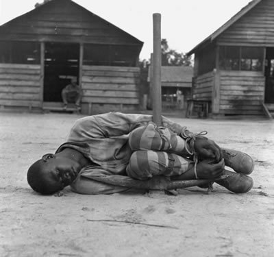 Enslaved Americans after the "ending of slavery" were bought and sold, chained by the ankles and necks at night, whipped to death, waterboarded, and murdered at the discretion of their owners, such as U.S. Steel Corporation which purchased mines near Birmingham where generations of "free" people were worked to death underground.