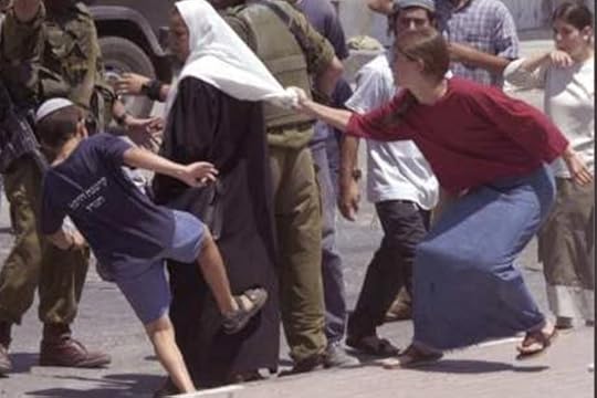 Spangler takes students to Israel/Palestine every year. When visiting the Arab market in Hebron, she learned that the heavy metal mesh screen overhead was hung there to protect shoppers from bricks and chairs thrown down from balconies by Israeli settlers. However, Spangler was struck with the contents of one of the objects settlers had learned could penetrate the screen: a plastic bag of human excrement. Israeli settlers behave like prisoners gone mad from confinement even as they steal the land and homes of non-Jewish people with impunity.