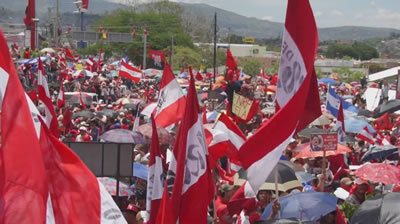 The struggle, and the movie, goes on -- filmed over a period of years. Leaders are forced into exile after murder attempts. The burned and bulldozed buildings are rebuilt. And the November 2013 elections arrive, and are blatantly stolen. Zelaya's wife runs on the people's platform against the "law and order" candidate of the military. Observers from the EU and the OAS declare the election legitimate, but individual members of those commissions denounce that conclusion as corrupt and fraudulent. Students lead the protests, and the protests continue to grow.