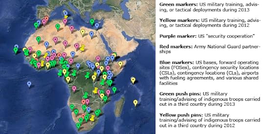Recent U.S. military actions in Africa are mostly quiet interventions that stand a good chance of leading to enough chaos to be used as justifications for future public "interventions" in the form of larger wars that will be marketed without mention of their causation. Future famous evil forces that may one day be threatening U.S. homes with vague but scary Islamic and demonic threats in U.S. "news" reports are discussed in Turse's book now and are arising now in response to militarism rarely discussed in corporate U.S. news media.