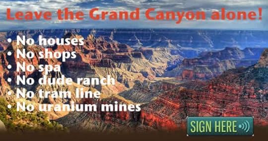 "The Grand Canyon is too important to sell off. It is irreplaceable, and the kind of development under consideration will destroy this Natural Wonder forever. Doesn't the Grand Canyon belong to all of us? Doesn't the Grand Canyon belong to Future Generations? Is there nothing more important than profits anymore? Do not sell what belongs to ME. Do not sell what belongs to YOU. Do not sell what belongs to OUR FUTURE. Thank you." — marcus white