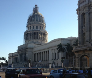 In the U.S. the Capitol dome is one of few things that anyone bothers to repair. Havana, in contrast, is packed with repair shops for everything imaginable. The walkable streets with relatively few cars display beautiful cars that have been repaired and repaired and repaired for decades. The country's laws are reworked through very public processes. Cars tend to be much older than laws, unlike the U.S. situation in which basic laws tend to predate modern machinery.