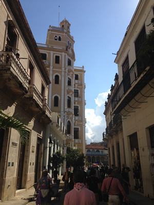 Taken all in all, and having just arrived, it's not a bad place to be cut off from the world. I have yet to find a SIM card or a phone. My hotel has no internet, at least not until mañana. The Hotel Nacional -- that of the Godfather movie -- tells me they have internet only in the day time. But the Havana Libre, formerly Havana Hilton, has live music, electric outlets with three holes, and slow but functioning internet (superior to Amtrak's) for 10 pesos an hour, not to mention mojitos.