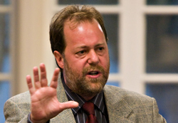 Ken Hildebrandt, an Independent Green who spoke often if vaguely about cutting the military, answered my question by offering arguments that UFOs had visited Roswell. Asked about climate change, he argued that chem-trails from airplanes are manipulating our weather. Pretty much all the other questions he answered: "Hemp." Hildebrandt is a bit of a mixed bag. He wants progressive taxation but no gun laws. He wants single-payer health coverage but calls it "public option" and claims that life expectancy in the United States is in the 40s. (During the whole debate, neither the moderator nor any candidate ever corrected another's factual errors, and the opportunities were plentiful.) Hildebrandt wants to stop subsidizing Lockheed and Boeing, but has nothing to say on a lot of topics, seems to think the two men sitting next to him would be about as good in office as he would, runs for office every two years as a routine, has a wife running in the next district, and -- less peacefully than one might wish -- calls the incumbent a "monster."