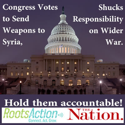 On Constitution Day, the House of Representatives -- followed the next day by the Senate -- decided to put off until after the next U.S. elections in November any possible consideration of the new U.S. war already underway in Iraq and Syria, but voted in the meantime to approve of shipping weapons over to Syria to fuel the violence.