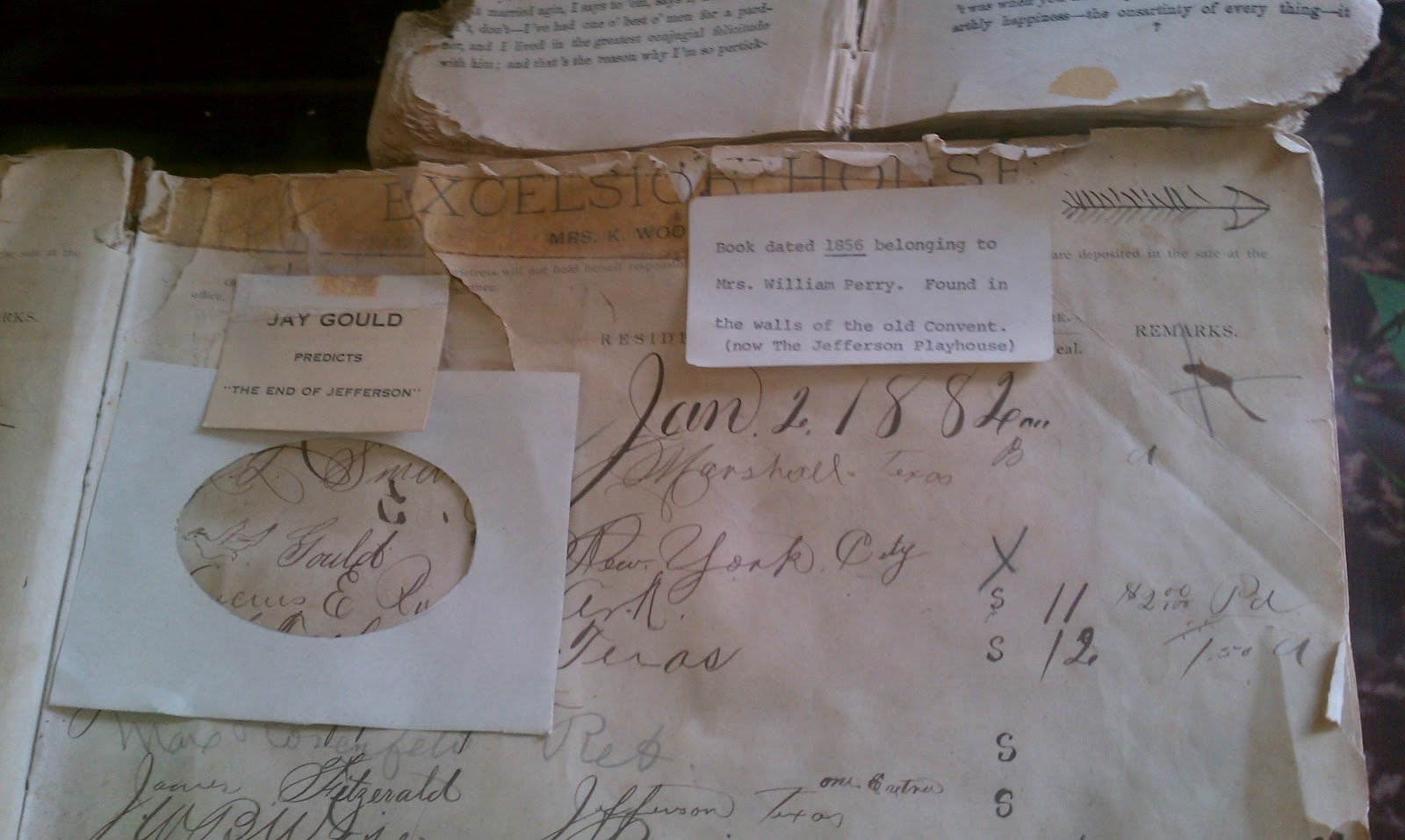 Jay Gould signed the guest registry for the Excelsior HotelMany actually attribute this to Jay Gould, the river magnate. Legend has it that Gould wanted to bring his railroad through Jefferson but the town leaders refused. So, Gould responded with a curse: “Grass will grow in your streets and bats will roost in your belfries, you decadent port.”