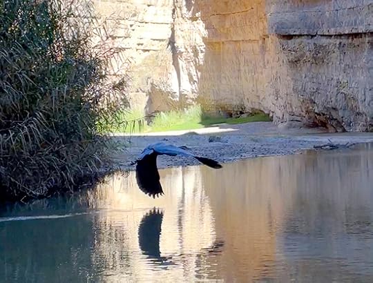 Then we happened upon this heron. I’d never seen a heron in Santa Elena Canyon. It caught a fish right in front of us and held the fish in its mouth for minutes on end. It watched us and let us draw near several times. Then it kept flying 50 yards or so downstream and waiting for us to catch up.